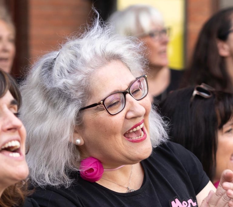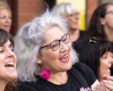 Cuando todo parecía indicar que tendríamos que salir de nuestro local habitual y buscar otro, Ana y otras compañeras removieron cielo y tierra para tratar de conseguir otro lugar donde poder desarrollar nuestra actividad. Y fue ella finalmente quien, gracias a sus dotes de comunicación y de influencia, consiguió que nos cedieran este magnífico local donde a día de hoy cantamos súper a gusto cada domingo. Su presencia y su sonrisa siempre nos inspiran y siempre le estaremos agradecidas por haber solucionado ese problema en un momento tan difícil.