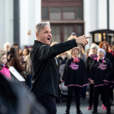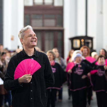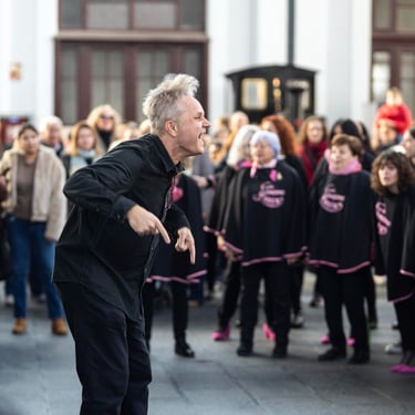 Óscar es mucho más que un director de coro; es el alma que nos impulsa a ser nuestra mejor versión cada vez que nos encontramos para ensayar. No solo dirige nuestras voces, sino que también nos une como grupo. Bajo su dirección aprendemos cada domingo que cantar no es sólo cuestión de voz sino sobre todo de corazón y alma. En cada ensayo, en cada actuación, nos divierte, nos inspira y, sobre todo, nos hace sentir orgullosas de lo que logramos juntas. Le queremos un poquito :), pero ¡no se lo digáis que se viene arriba!